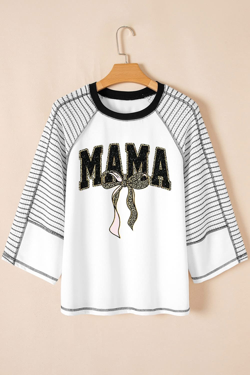 Black MAMA Leopard bow CONTRAST LOOSE TOP