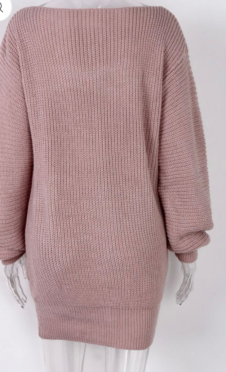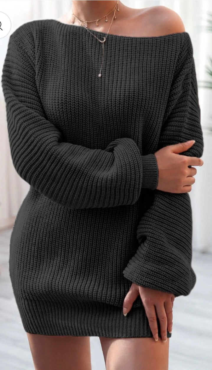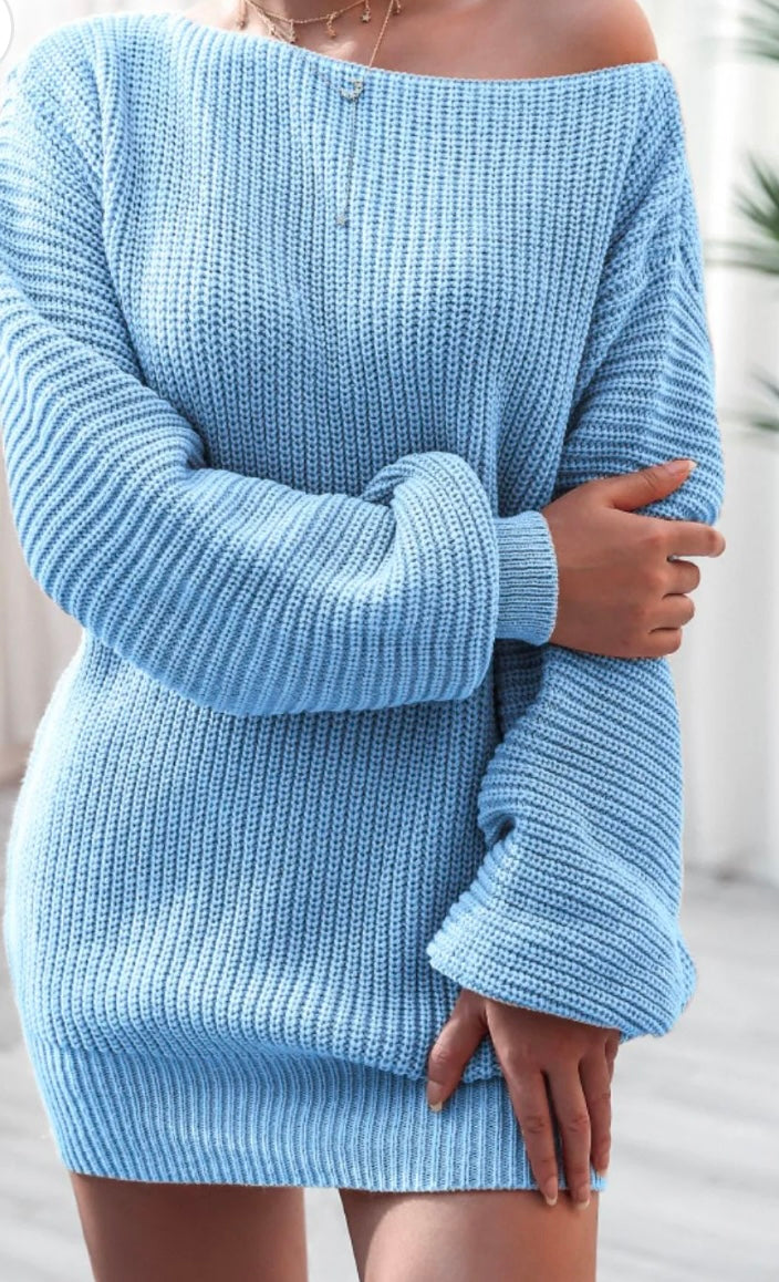 Boat Neck Long Sleeve Mini Sweater Dress