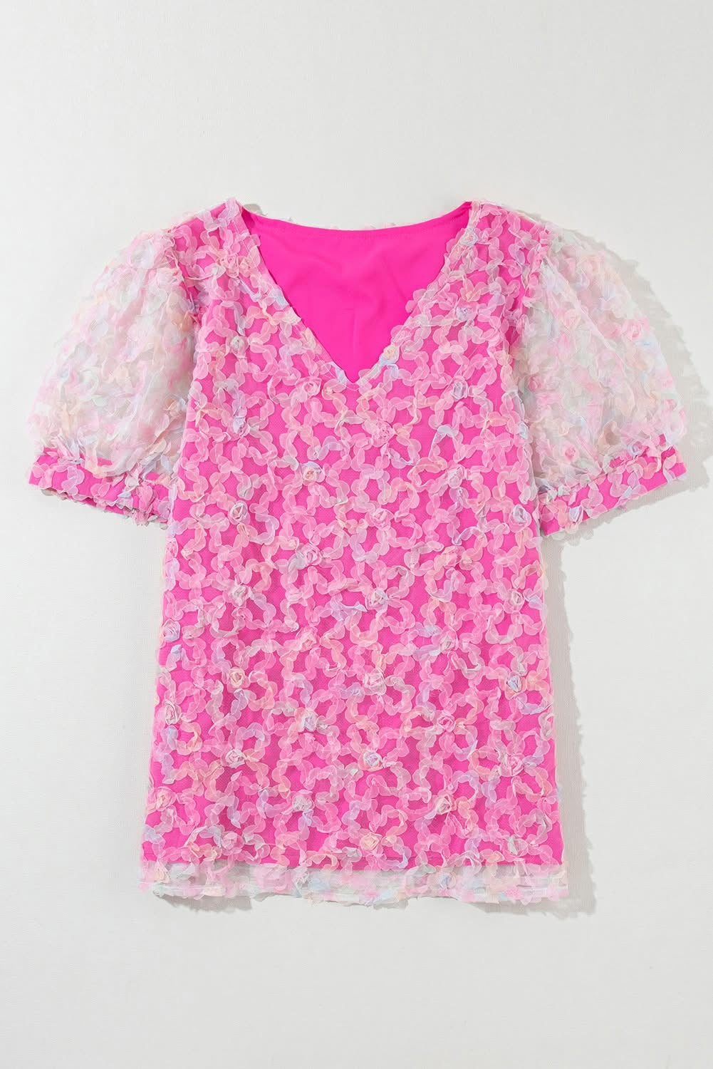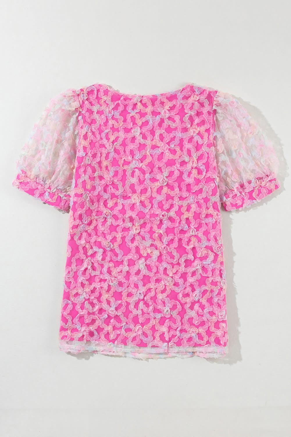 Bonbon Flowery Mesh Puff Sleeve Blouse