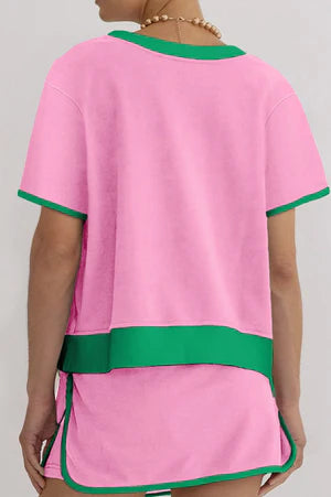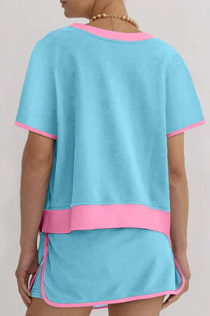 Get ready to rock your summer style with our matching shirt and skirt set! Perfect for any casual occasion, this set is both comfortable and stylish. Mix and match with other pieces for endless outfit options. Don't miss out on this must-have set!