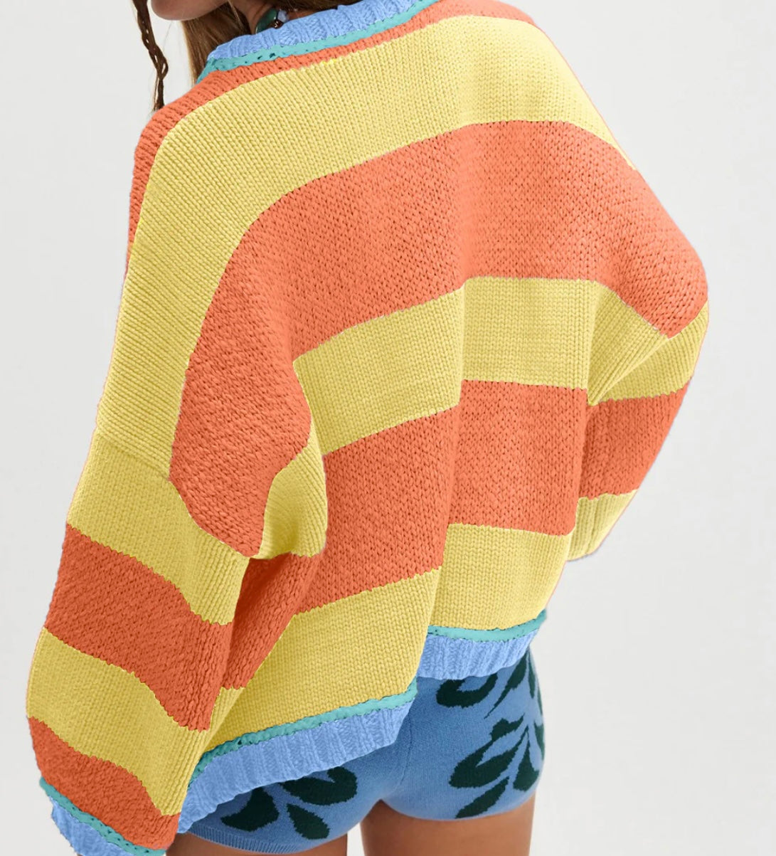 Contrasting Trim Round Neck Oversize Sweater