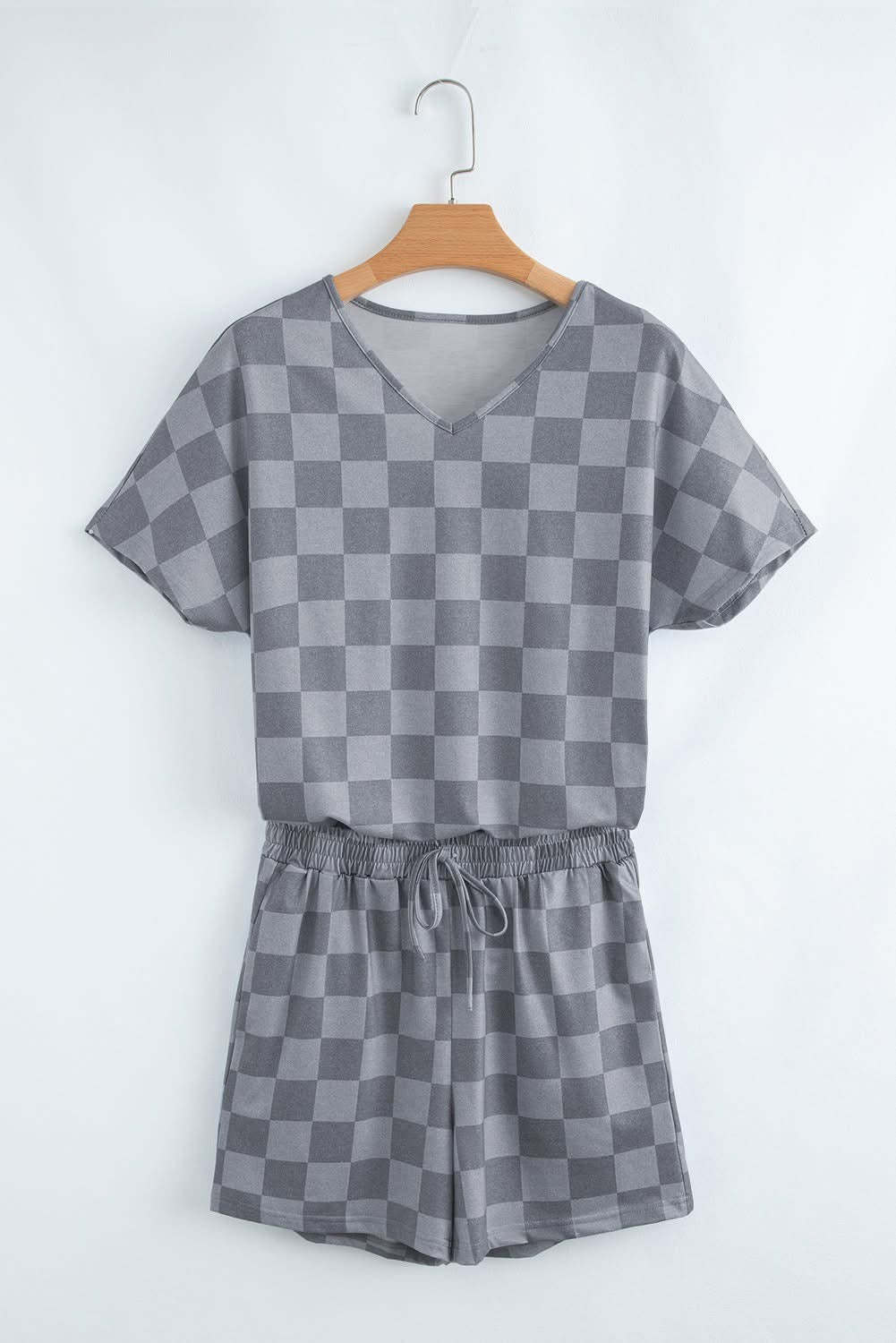 Gray Checkered V Neck Lounge set