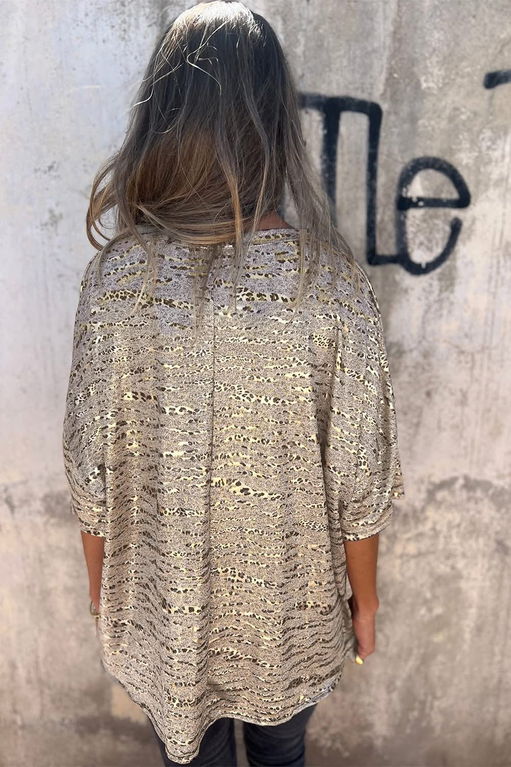 Gray Leopard V Neck Loose Fit T Shirt