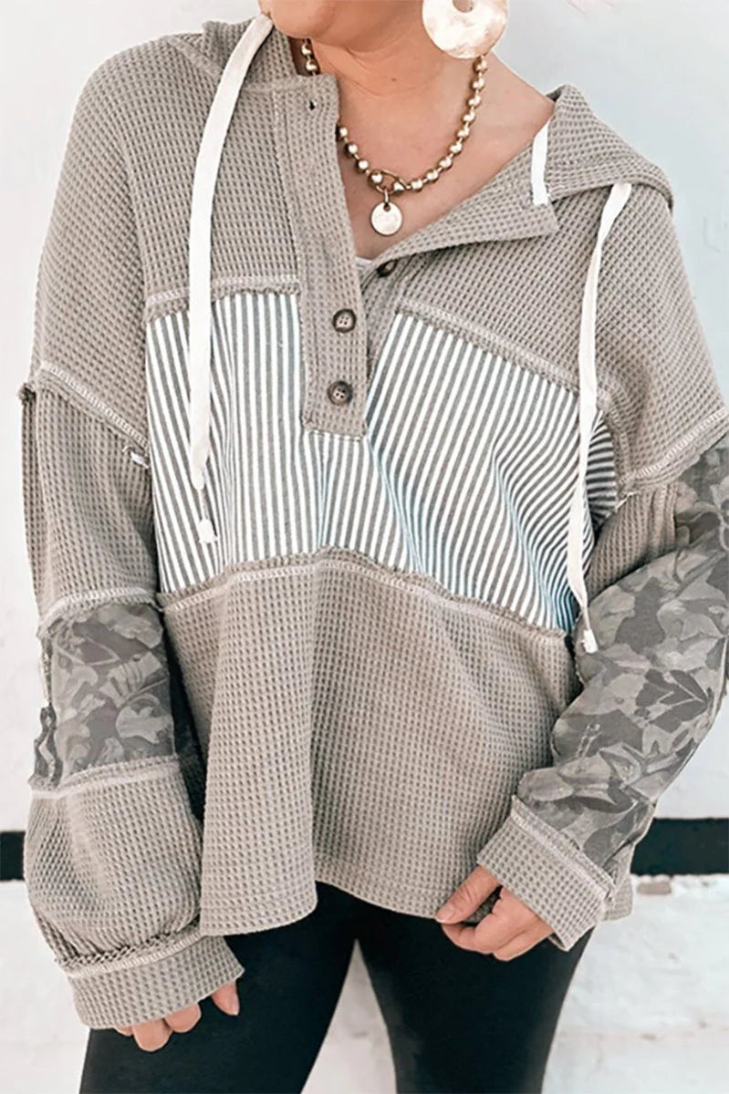 • Load image into Gallery viewer, GRAY LONG SLEEVE HOODED TOP **SHIPPING EXPECTED TO BEGIN ON DATE 8/6**