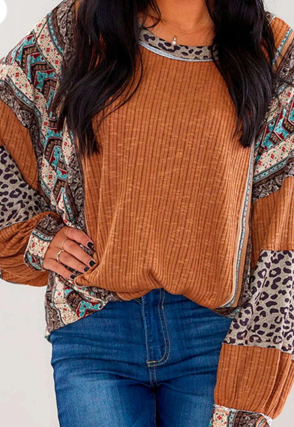 Leopard Round Neck Long Sleeve Sweatshirt