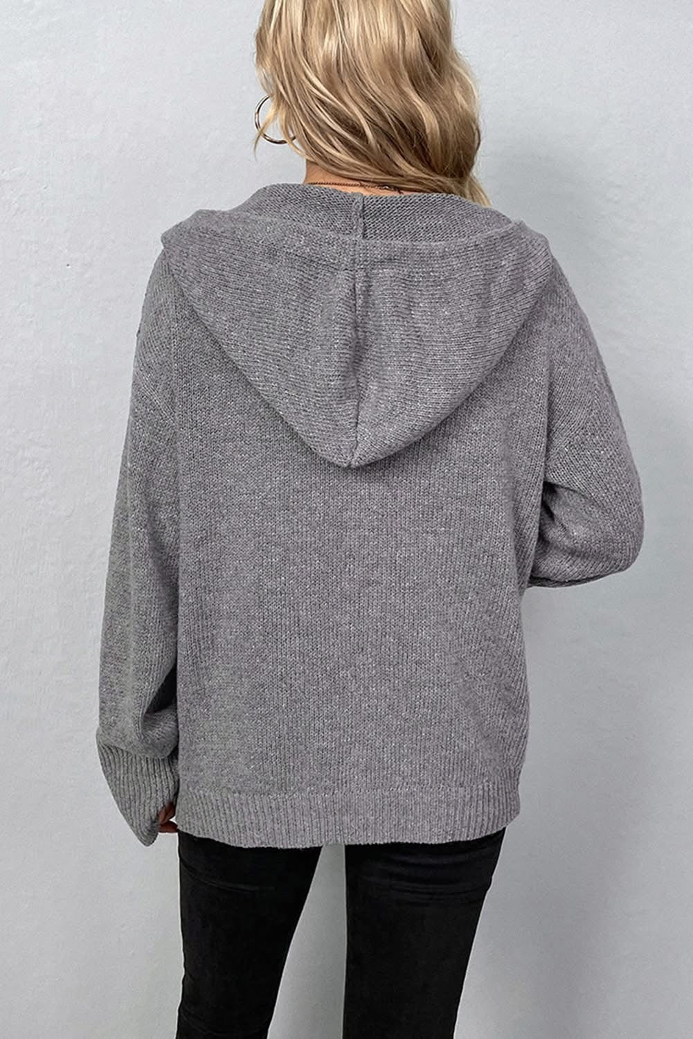 Medium Grey Drawstring Hooded Sweater Cardigan