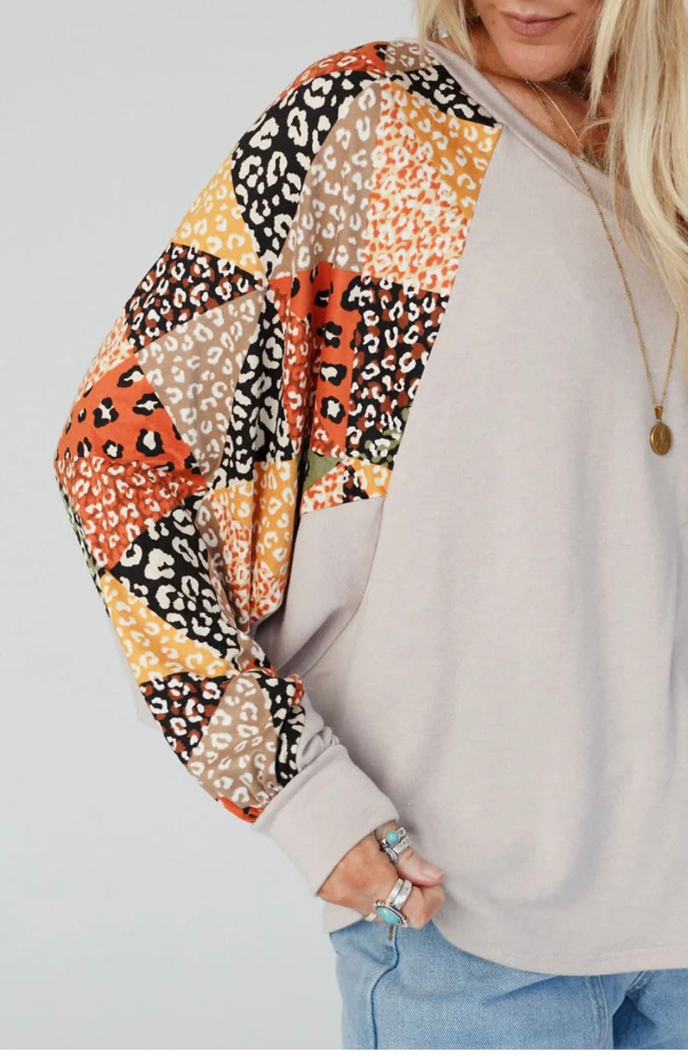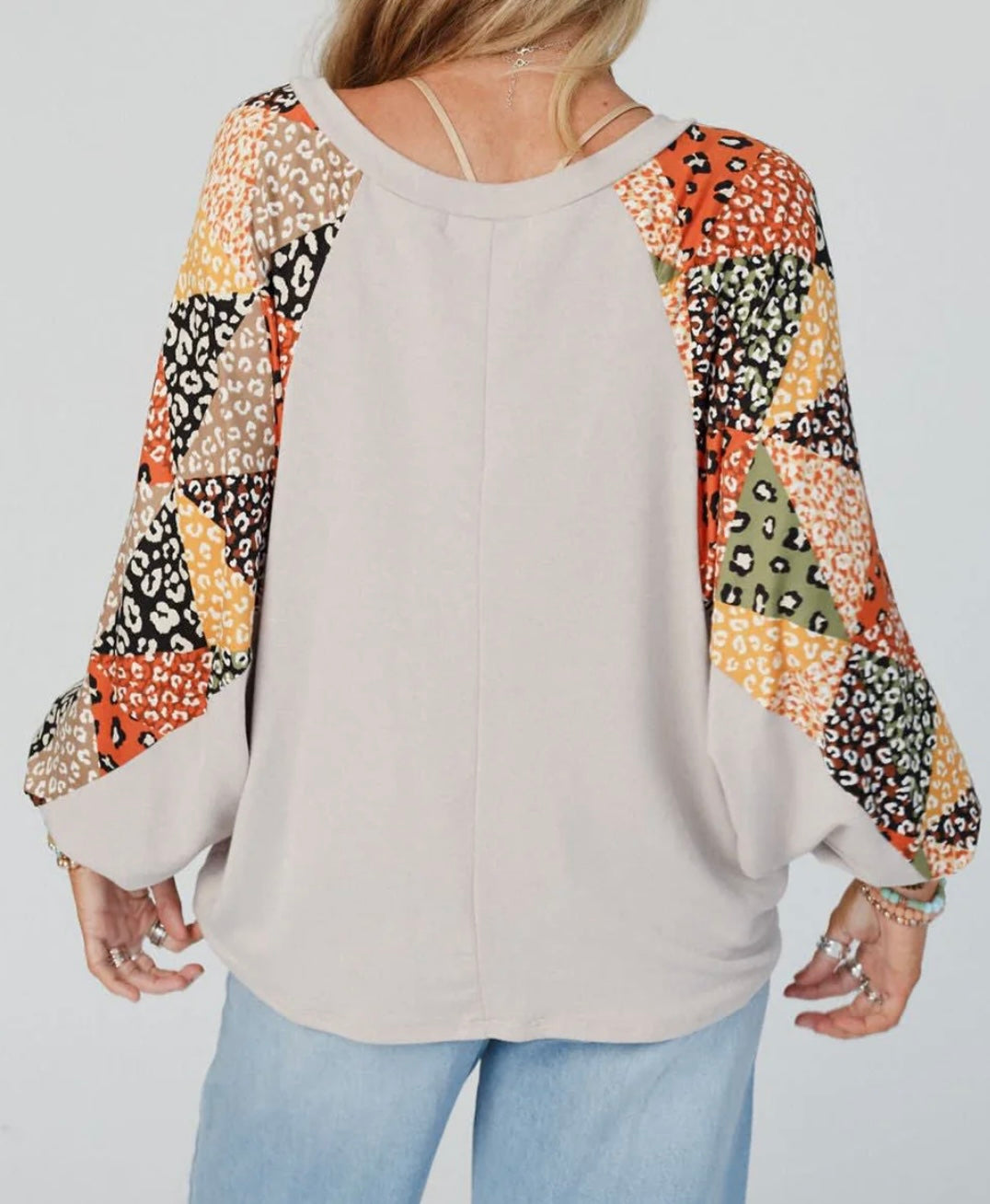 Patchwork V Neck Loose Top