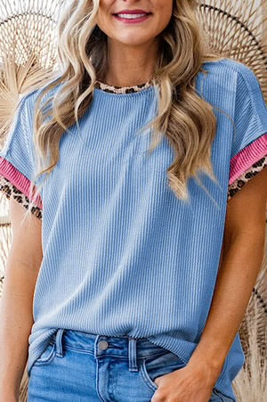 SAVANNA HORIZONS SKY BLUE CORDED CREW T-SHIRT **SHIPPING EXPECTED TO BEGIN ON DATE 6/20**