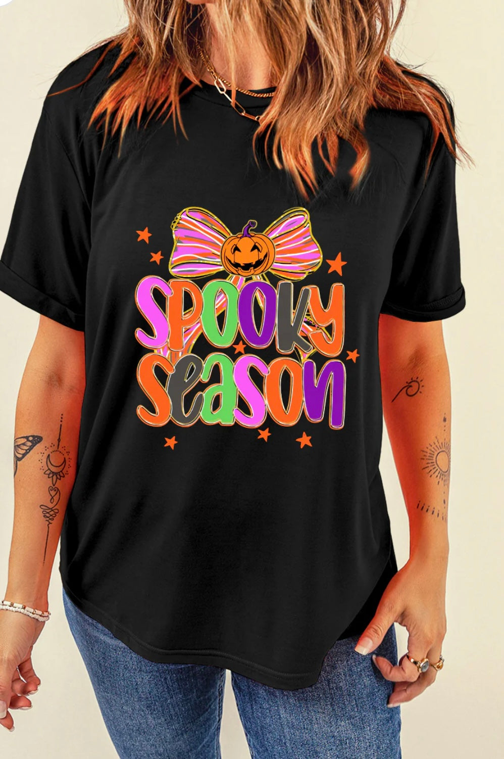 SPOOKY SEASON Halloween Pumpkin Bow Print T Shirt