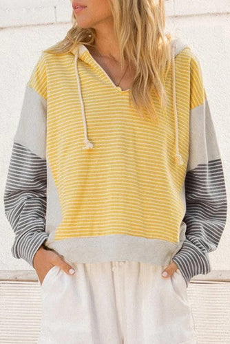 Color Block Drawstring V Neck Loose Fit Hooded Top