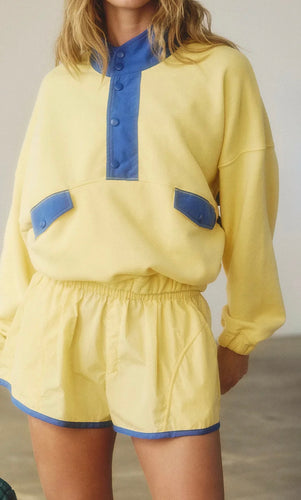 Color Block Patchwork Half Button Pullover and Shorts 2pcs Outfit