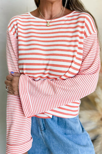 Striped Knitted Drop Shoulder Round Neck Sweater