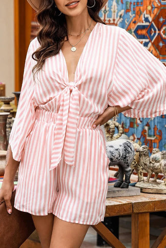 Bow Striped Kimono Sleeve Romper