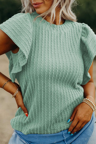 Solid Textured Flutter Sleeve Top