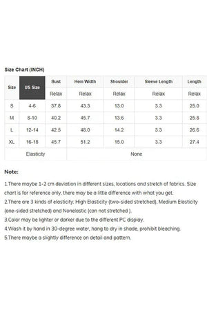 - Approx. Manufacturer's Measurements for Small: Bust: 37.8" x Hem Width: 43.3" x Shoulder: 13.0" x Sleeve Length: 3.3" x Length: 25.0"