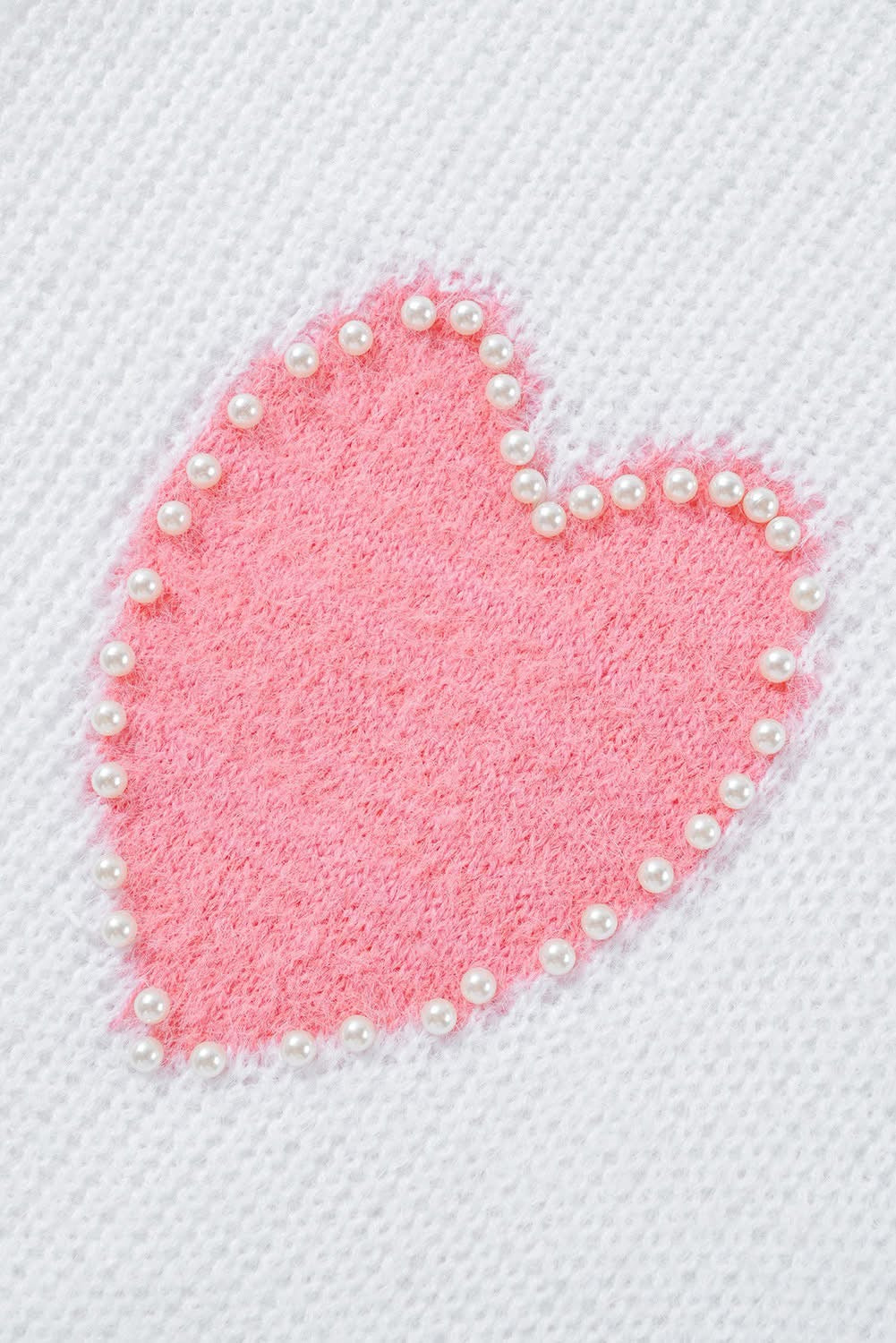 White Pearl Beaded Fuzzy v neck sweater